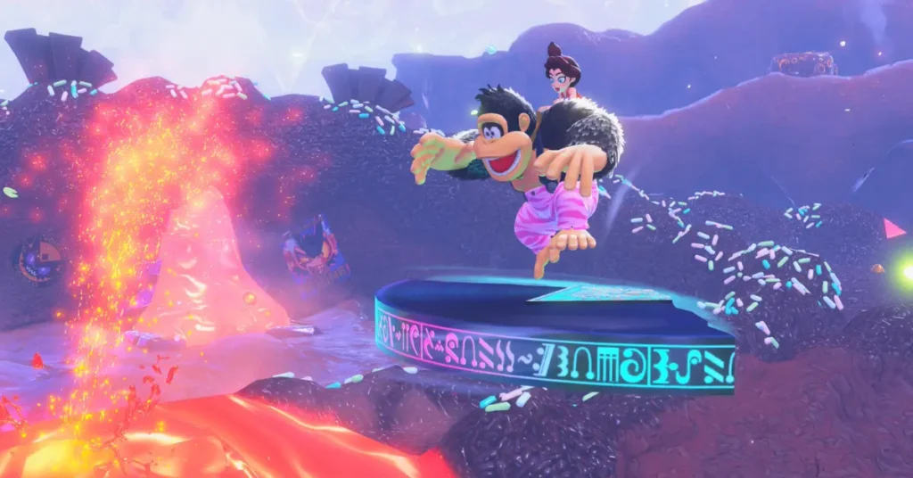 Nintendo also redesigned DK to resemble his original arcade look — livelier eyes, exaggerated proportions, and expressive facial animations. It makes cutscenes pop with humor and personality.